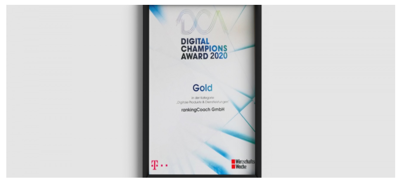 rankingCoach wins 1st place at the Digital Champions Award 2020 WEST in the category "Digital Products & Services". For the fifth time, as organizers of Digital X, Telekom and WirtschaftsWoche are jointly honoring companies that are driving digital transformation and thus securing their success. Thomas Meierkord, COO and co-founder of rankingCoach, sees digitization as a clear priority for all companies - whether small or large - especially in the area of marketing: