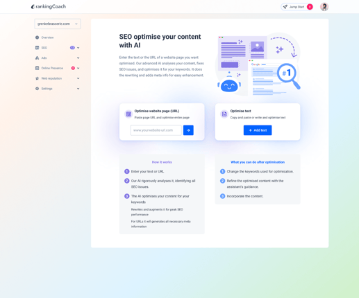 Advanced tools with AI-powered content optimization make this process even smoother. With rankingCoach's AI Text Optimizer, you can drop in your text, and the tool will scan and analyze your content, add relevant keywords, and infuse essential meta information.