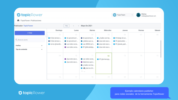 Esto lo haremos a través de diferentes KPI’s para saber si hemos conseguido los objetivos propuestos. Lo que nos ayudará a corregir a tiempo aquello que no sea acorde a nuestra estrategia. La herramienta de analítica Topicflower nos brinda diferentes KPI’s tales como: