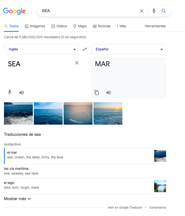 Por otro lado, si escribes una frase clave y encuentras una mezcla de resultados, esto te ayudará a asegurarte de que tus elecciones de palabras clave son adecuadas. Por ejemplo, una agencia de marketing digital que vende servicios de publicidad en buscadores (también conocida como SEA) podría optimizar para el único término SEA, pero un rápido viaje a los resultados de Google les mostrará que mucha gente que va a esta página no está buscando la palabra clave marketing en buscadores.
