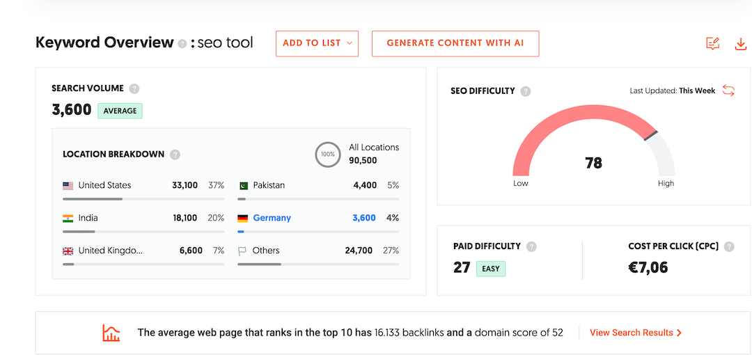 Très apprécié sur les marchés européens, Sistrix propose des modules spécialisés et un suivi précis de l’indice de visibilité. Plus coûteux, avec un prix à partir de 119 € par mois, et demandant un temps d’adaptation.