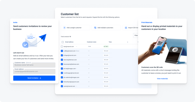 Grazie a diversi metodi di raccolta - e-mail, codici QR e adesivi brandizzati - è possibile raccogliere le recensioni senza soluzione di continuità attraverso tutti i punti di contatto con i clienti. Risparmiando tempo e aumentando i tassi di risposta, Review Booster ti aiuta a costruire una reputazione online più solida con meno sforzi. È un modo più intelligente ed efficiente per tenere sotto controllo i feedback dei clienti.