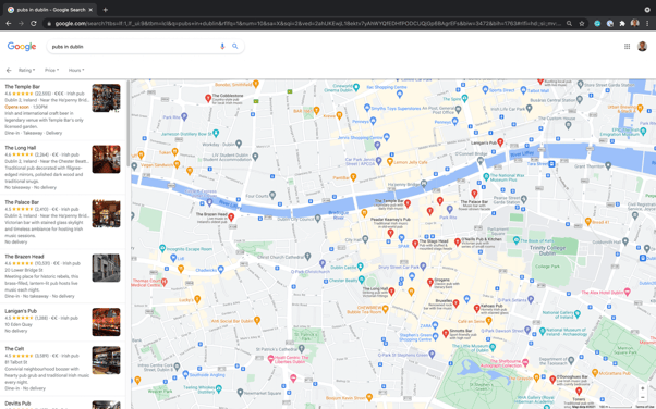 Os habitantes locais de Tijolos e Mortes precisam estar especialmente atentos ao impacto das revisões negativas na visibilidade dos mecanismos de busca, pois esse impacto é particularmente perceptível nas páginas do Google Maps onde as PMEs tendem a atrair muitos clientes locais e de passagem. Por exemplo, com o termo de busca altamente competitivo 'pubs in Dublin' você só encontra bares com mais de mil revisões e pelo menos uma classificação geral de 4 estrelas ½ na primeira página de resultados. Os bares nesta página atrairão a maioria dos clientes e os cliques.